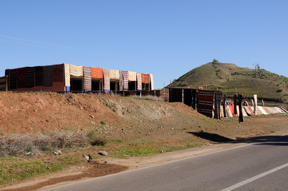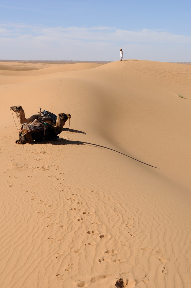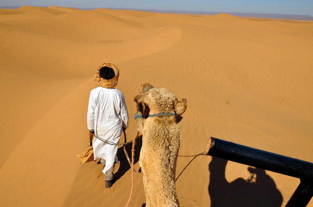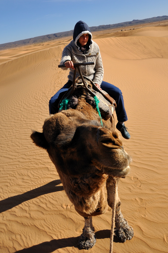 Nach unserem Aufenthalt in Marrakech ging es über den hohen Atlas. Genauer über den Tizi-n-Tichka Pass (2260 m), der tolle Ausblicke in den hohen Atlas bescherte. Hinter den hohen kalten Bergen ging es, durch das wunderschöne Dadestal, immer weiter in Richtung Sahara. Karge Steinlandschaft mit zahlreichen fruchtbaren Oasen und Kashbas am Fluß Dades. Immer weiter bis in die Presahara, westlich von Tamegroute, hinter Zagora. Hier buchten wir uns in ein Nomadencamp für Touristen ein und schliefen sogar eine Nacht in einem Nomadenzelt. Neben der steinigen Wüßte gab es die Dunes de Tinfou als echter Hingucker und sandiges Wüßtenfeeling. Um das Gefühl noch zu verstärken ging es mit dem Kamelführer Mohammed einige km per Dromedar in die Dünen. Nebenbei gab es jede Menge Tee, Shishas und natürlich das leckere Essen aus der Tagine. Die Berber, welche diese Gegend bewohnen spielten abends am Feuer ihre traditionelle Musik, mit Trommeln und allerhand merkwürdigen Instrumenten. Trommeln und Singen kann hier wirklich fast jeder. Am Sylvesterabend gab es ein großes Feuer und allerhand Musik.