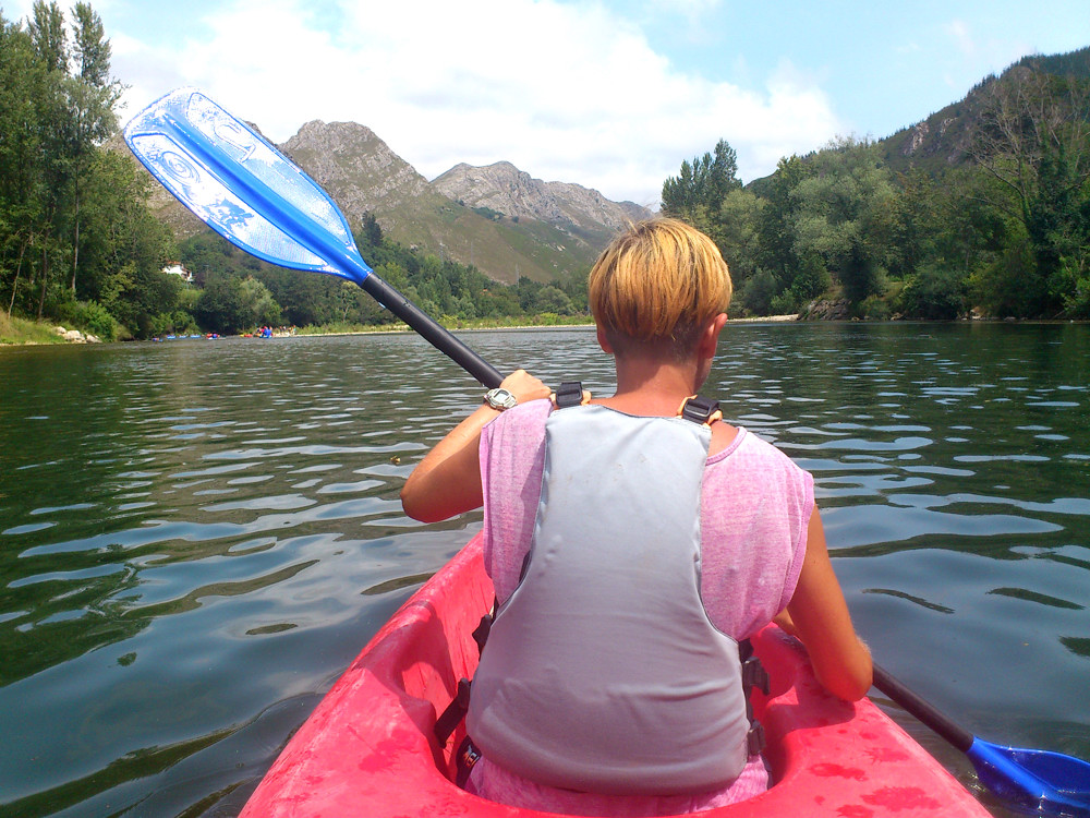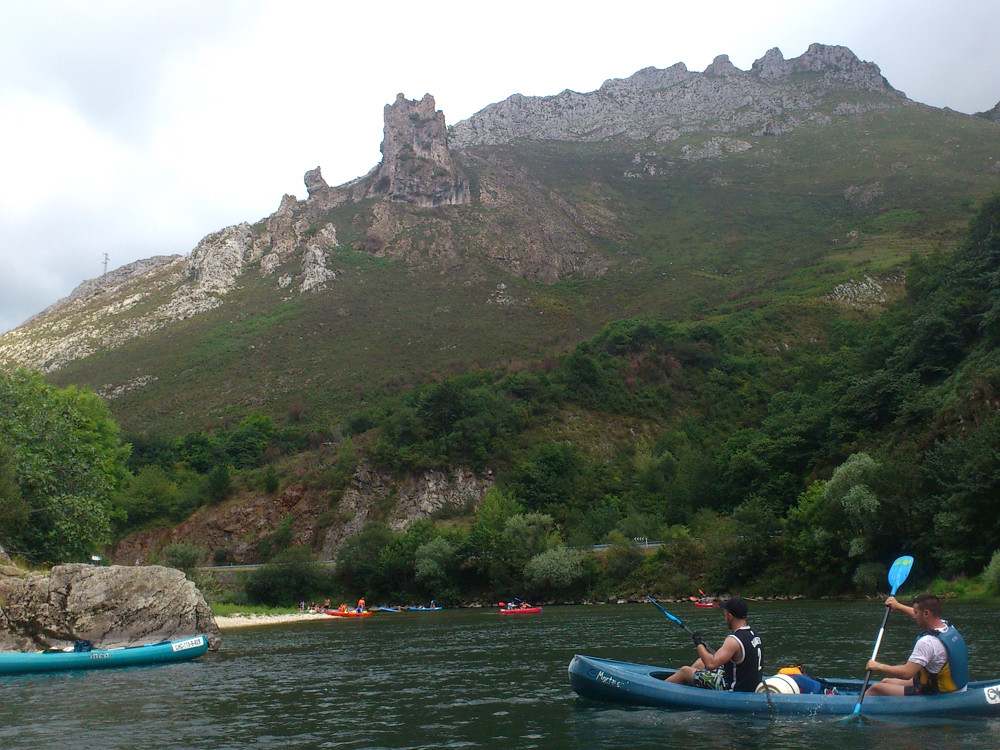 Immer den Picos de Europa an der Küste folgend ging es dann auf nach Asturien. Bei ziemlich schlechtem Wetter kamen wir am Playa de Torimbia an. Es geht durch eine Siedlung mit steilen, engen Straßen auf eine kleine Landspitze mit wundervollem Ausblick. Am Abend gab es ein kleines Blueskonzert, open air an einer Bar direkt an einem anliegenden Strand. Ein kleiner Surf in der herrlichen Kulisse war auch drinn. Für Besorgungen ging es nach Ribadesalla, eine größeres Fischerdorf. Von Arriondas aus haben wir eine organisierte Kanutour auf dem Rio Sella gestartet.