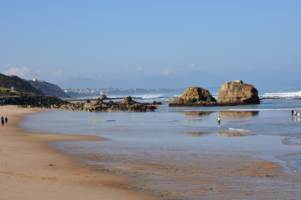 Auf den Bildern der Fluss von Mimizan, eine Welle in Messanges, Parlementia und der Hafen in Guéthary, die Bucht von Saint-Jean-de-Luz und der Rest ist von Biaritz und Illbaritz. Die Surfbilder stammen vom Milady Strand.