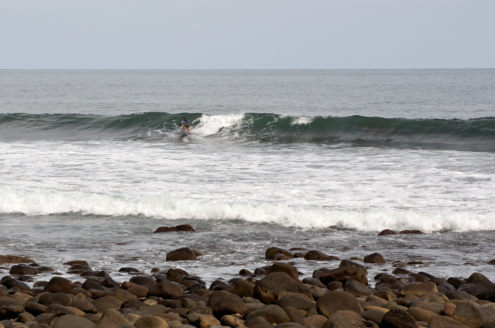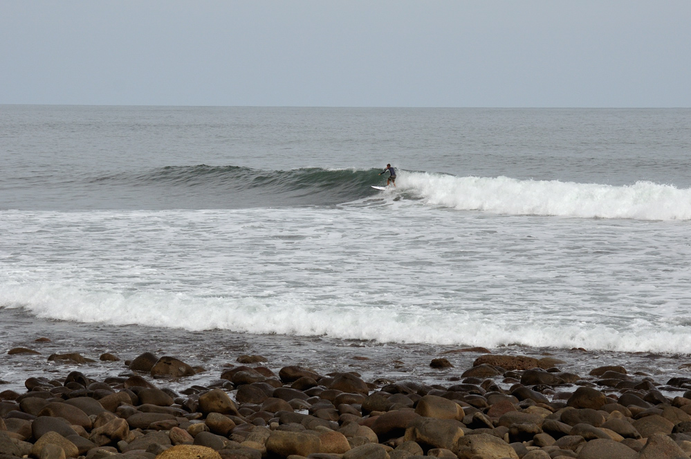 Für die zweite Woche ging es ein Stück westlich zum playa de chuita, besser bekannt als Km59 und Km61, die beiden rechten Point Breaks an dem Strand. Die Woche war sehr relaxt, neben mir war nur ein nettes Kalifornisches Pärchen zu Gast in der K-Lodge. Ein sehr schönes Haus mit geräumigen Zimmern, super leckeres Essen und eine sehr freundlichen, familiären Atmosphere. Neben ein paar Übernachtungsmöglichleiten kommen auch Tagesgäste aus El Tunco zum Surfen. Die Woche über gabs ca. 1 m Swell, was den beiden Points reicht um klasse Wellen zu produzieren. Km59 ist etwas konsistenter und einfacher zu surfen, brach aber auch meist in 2 Sektionen. Km61 ist etwas wilder, schneller und einiges mehr zum Paddeln. Dazwischen bricht noch eine linke Welle über den schwarzen Sand, in der sich meist die einheimischen Kids vergnüen. Wie in diesem Land wohl üblich wird beim Surfen viel gelächelt und gelacht. Der beste Surf ist morgens, da der Wind am ehesten mitspielt und es nicht so heiss ist. Ich bin meist um 5:30 Uhr aufgestanden um mir dann um 09:30 Uhr das wohl verdiente und immer sehr leckere Frühstück zu genehmigen. Als Besonderheit durfte ich einem Kindergeburtstag miterleben, mit einer Pinata, welche ich bis dahin nur aus Filmen kannte. Nach einer Woche war ich dann ziemlich verspannt, meine Füße von den Lavasteinen zerschnitten und sehr glücklich.